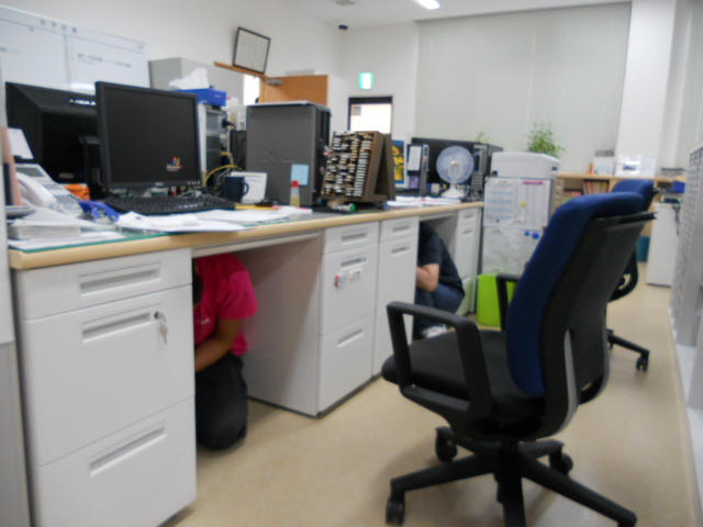 今日は近々来ると予想される南海トラフ巨大地震に備えて避難訓練を実地しました。地震発生の号令により訓練開始。全員机の下に避難し、非常ベルを鳴らし構内マイクにより訓練による避難を呼びかけ高台へ避難。災害リュック・AEDの持ち出し担当職員は各々背負っての避難です。すくも湾漁協の非難場所は本所から約600m、中央市場から約800mの位置にある旧田ノ浦小学校校庭。目標設定時間は一番遠い中央市場から7分30秒。実際走って歩いてみるとなかなかの上り坂・・・。思ったように体は動きません・・・。それでも無事全員目標時間内に避難できました。非常ベルが鳴ると緊迫感が増します。避難時みんなが一斉に動き出すと、出口が混雑したりどの道から避難すればいいのか迷ったり・・いくつか確認しておかないといけない問題点も見つかりました。普段から避難訓練を行っておけば、実際震災が起こった時、慌てず冷静に行動できるはず。被災地の皆様のご意見を参考にさせて頂きながら、これからも積極的に取り組んでいきたいと思います。